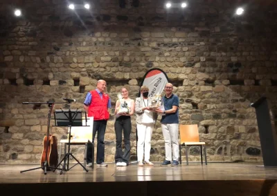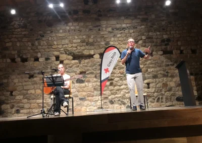 El salón de actos del Castell del Paborde, de la Selva del Camp, es precioso y enorme. Combina la piedra del castillo con vigas de madera, y la acústica es genial.
